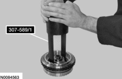 18. Install the Overdrive Clutch, Balance Piston and Direct Clutch Compressor 307-589/1 and Forward/Intermediate Spring Compressor 307-584/2 on the balance piston.
