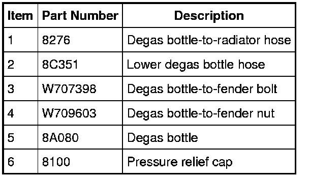 10. Fill the degas bottle. Refer to Cooling System Draining, Filling and Bleeding Service and Repair for the recommended coolant mixture and fill level.