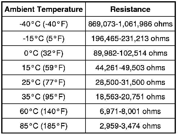 - Measure the resistance between in-vehicle temperature sensor C233-1, circuit VH414 (GN/BU), harness side and C233-3, circuit RH111 (GY/BU), harness side.