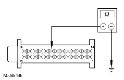 - Measure the resistance between HVAC module - DATC C2356b-21, circuit VH414 (GN/BU), harness side and ground.