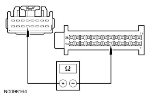- Measure the resistance between HVAC module - EMTC C2357a-10 or HVAC module - DATC C2356a-10, circuit RH111 (GY/BU), harness side and inline ( EMTC) C211-15 or ( DATC) inline C213-15, circuit RH111 (GY/BU), instrument panel harness side.