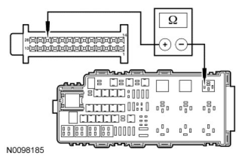 - Measure the resistance between blower motor relay socket pin 85, circuit CH123 (VT/GN) and HVAC module - DATC C2356a-24, circuit CH123 (VT/GN), harness side.