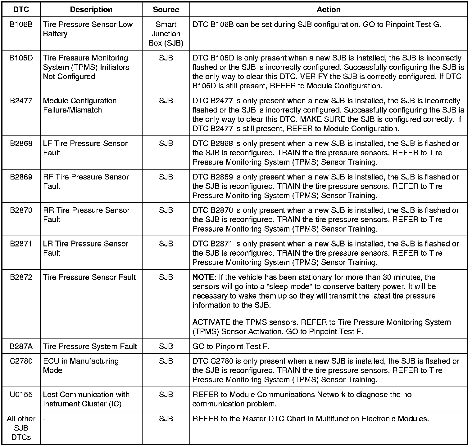 Tire Pressure Monitoring System (TPMS) DTC Chart