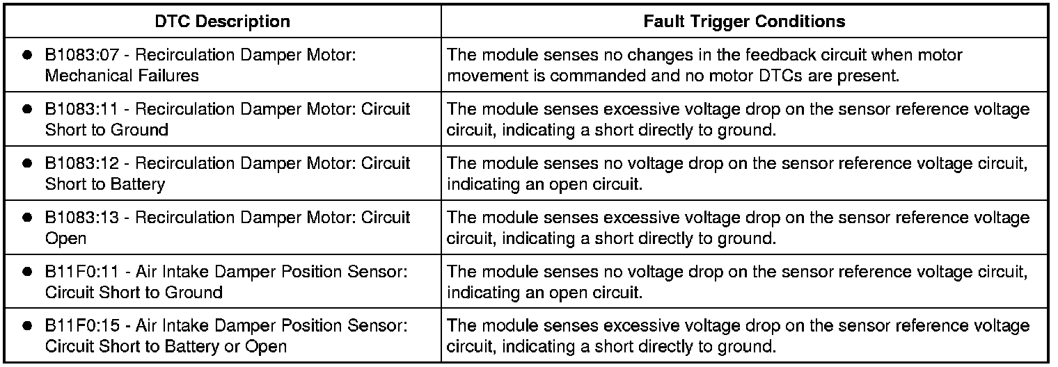 For DTC B1083:07, INSPECT for binding/damaged linkage or door. REPAIR as necessary. If no condition is found, INSTALL a new door actuator. CLEAR the DTCs. REPEAT the self-test. TEST the system for normal operation. For DTC B1083:11, GO to G2.