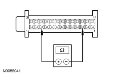 - Measure the resistance between HVAC module - DATC C2356a-15, circuit CH207 (BU/GY), harness side and HVAC module - DATC C2356a-16, circuit CH208 (GN/OG), harness side.