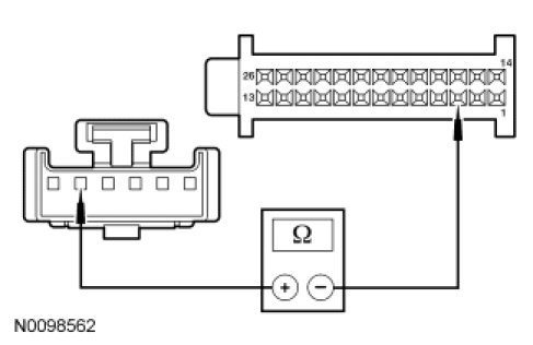 - Measure the resistance between HVAC module - DATC C2356a-10, circuit RH111 (GY/BU), harness side and HVAC module C2356a-3, circuit VH438 (GN/VT), harness side.