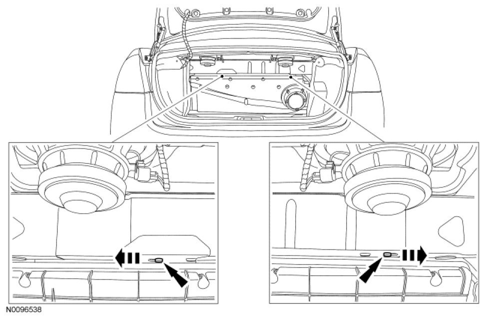 - Between the HVTB and the sheet metal, locate the seat backrest latch release lever.
