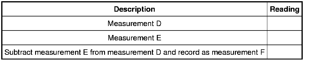 50. Subtract measurement E from measurement D and record as measurement F.