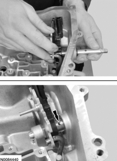 74. Install the manual control shaft and align the roll pin holes.