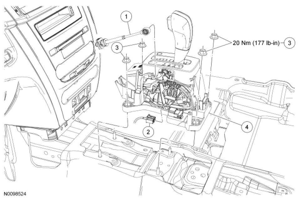 1. Remove the center console. For additional information, refer to Instrument Panel and Console Service and Repair.