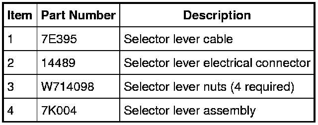 6. Adjust the selector lever cable. For additional information, refer to Selector Lever Cable Adjustment Adjustments.