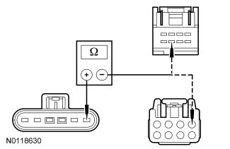 - Measure the resistance between LH front power window motor C540-3, circuit GD126 (BK/WH), harness side and ground.