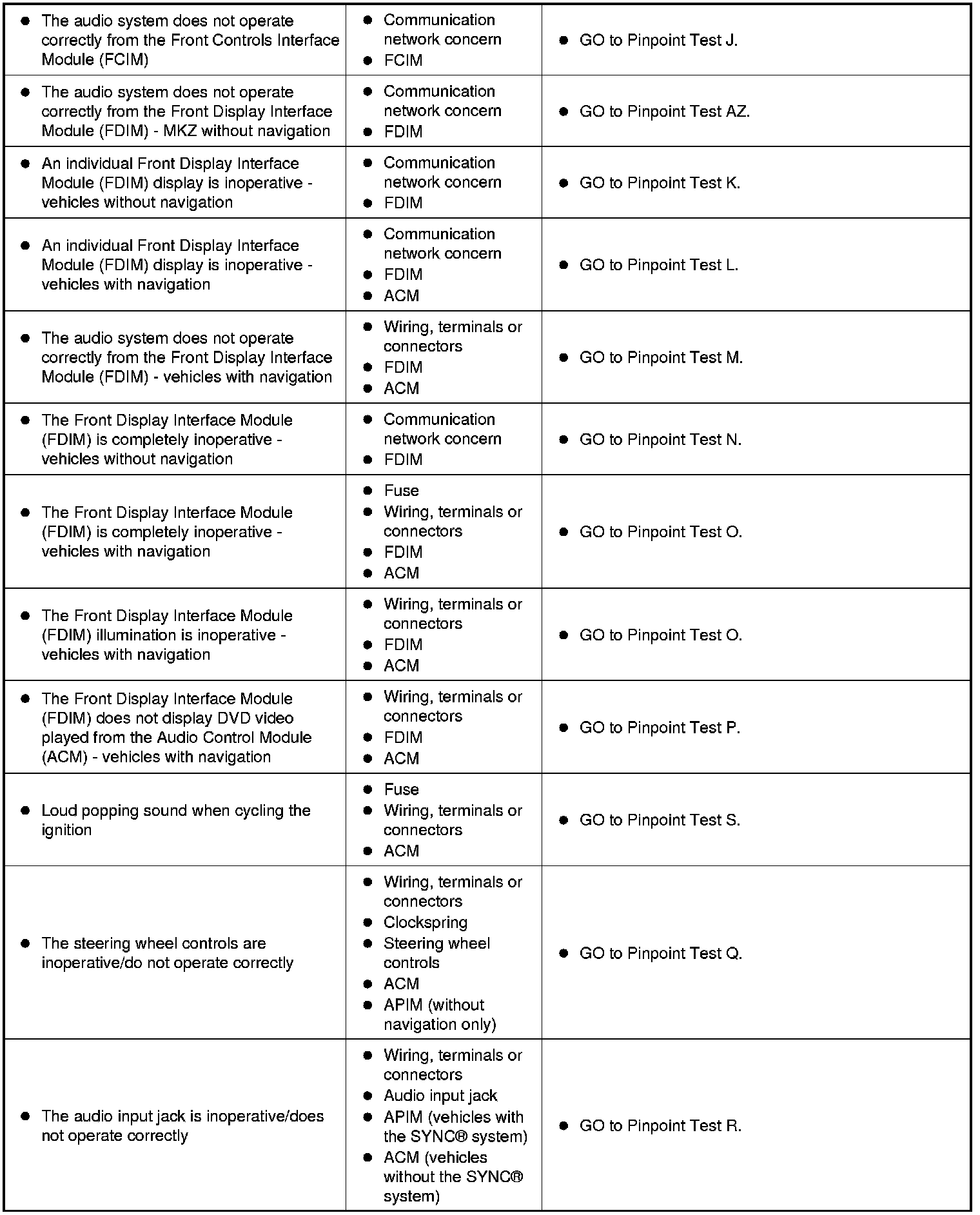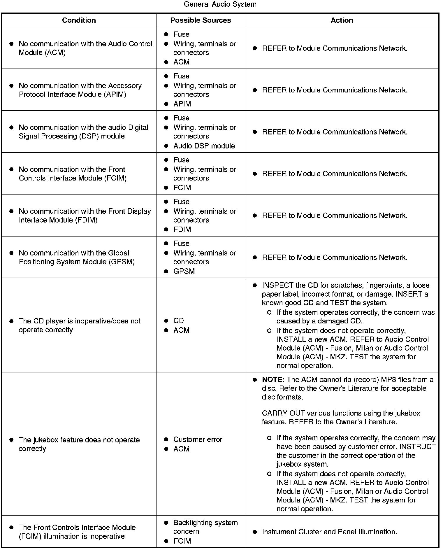 Symptom Chart - General Audio System