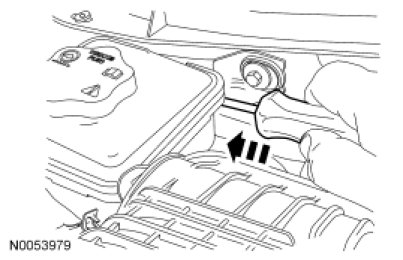 7. Push the retainer rearward to remove the power steering reservoir and position the power steering reservoir aside.