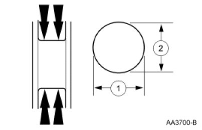 1. Measure the crankshaft connecting rod journal diameters in 2 directions perpendicular to one another at each end of the connecting rod journal. The difference in the measurements from one end to the other is the taper. Verify measurement is within the wear limit.