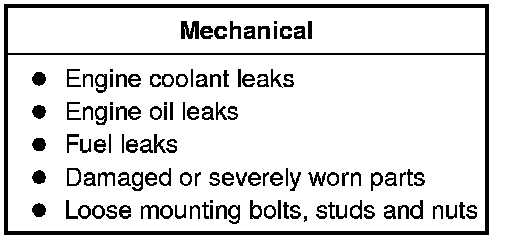 2. Visually inspect for obvious signs of mechanical damage. Refer to the following chart.