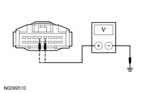 - Measure the voltage between the 4X4 control module C3253-4, circuit CBP35 (YE/GY), harness side and ground; and between the 4X4 control module C3253-5, circuit SBP11 (BU/RD), harness side and ground.