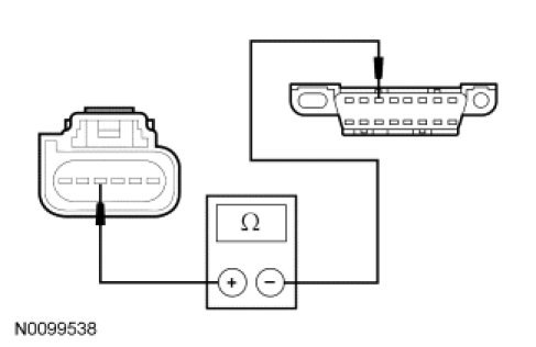 - Measure the resistance between the SOD-R C4229-3, circuit VDB07 (VT/OG), harness side and the DLC C251-11, circuit VDB07 (VT/OG), harness side.