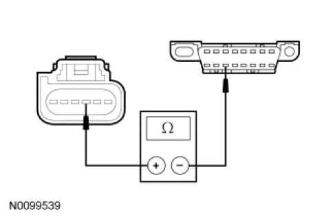 - Measure the resistance between the SOD-R C4229-4, circuit VDB06 (GY/OG), harness side and the Data Link Connector (DLC) C251-3, circuit VDB06 (GY/OG), harness side.