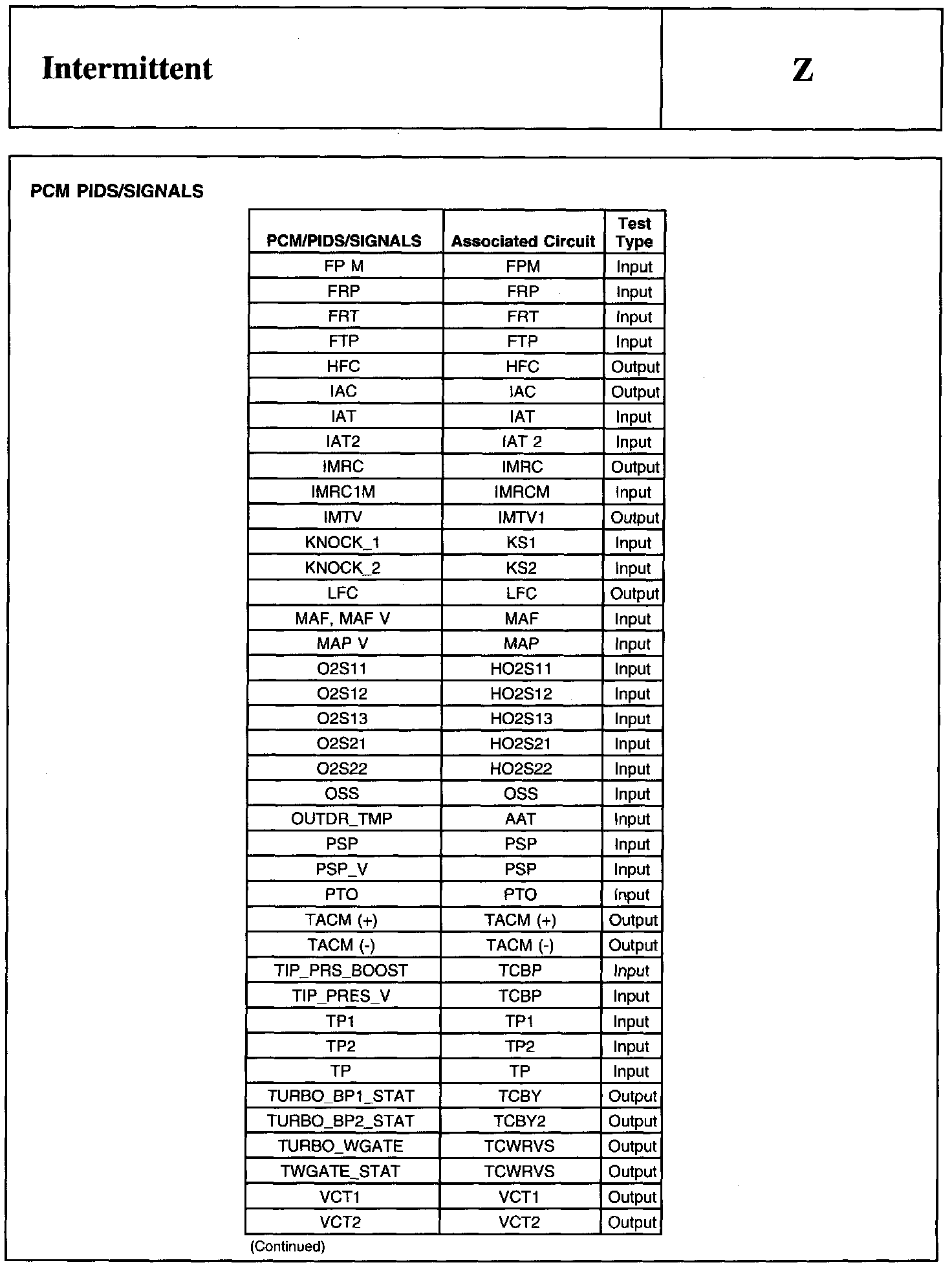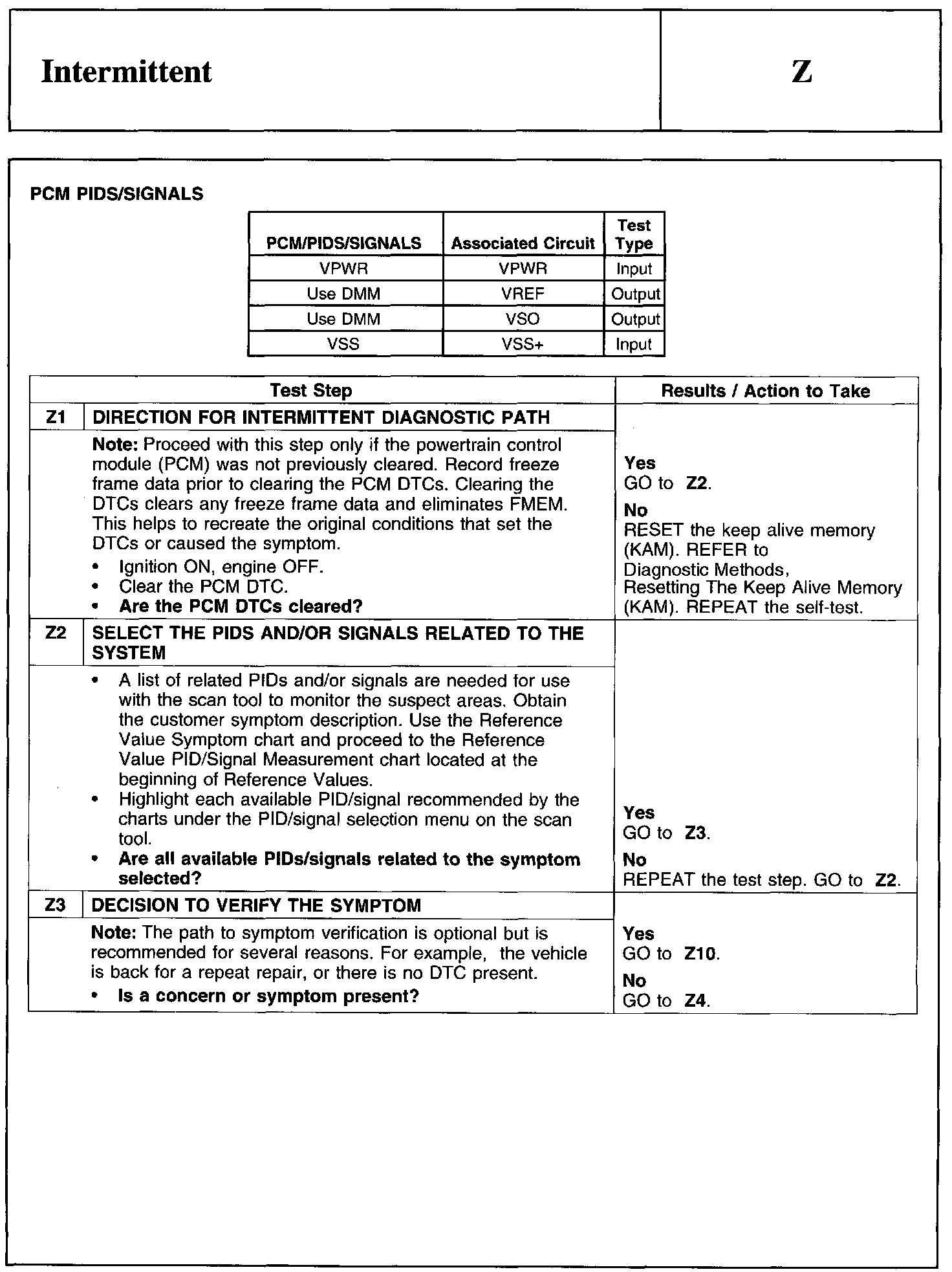 PINPOINT TEST Z: INTERMITTENT