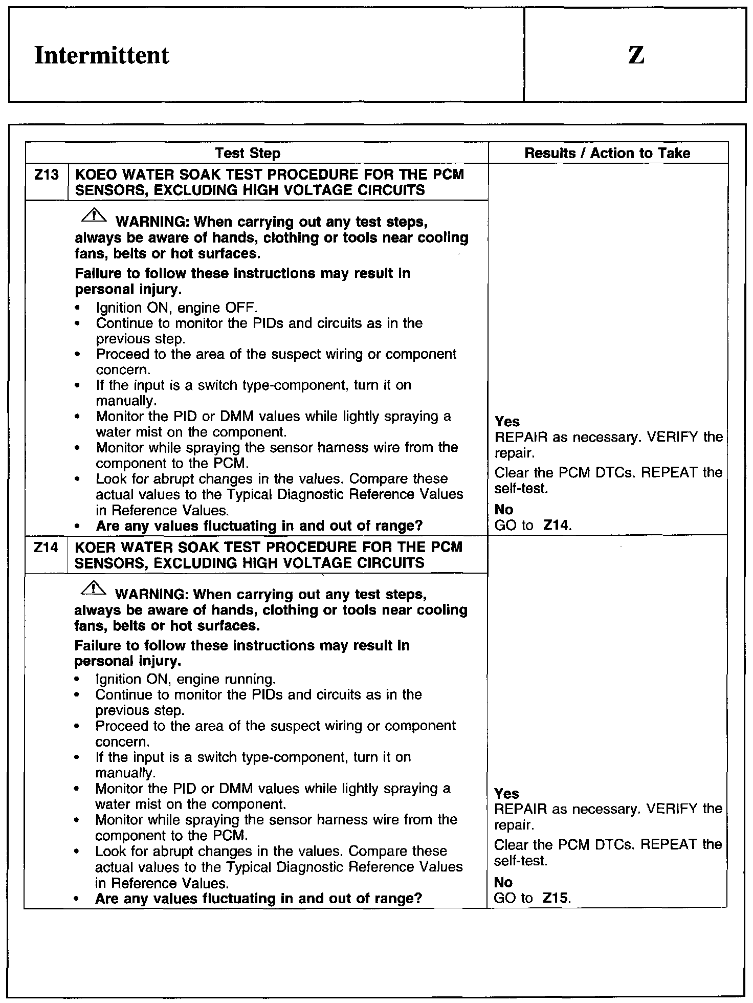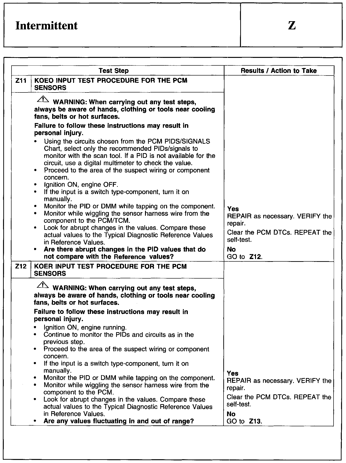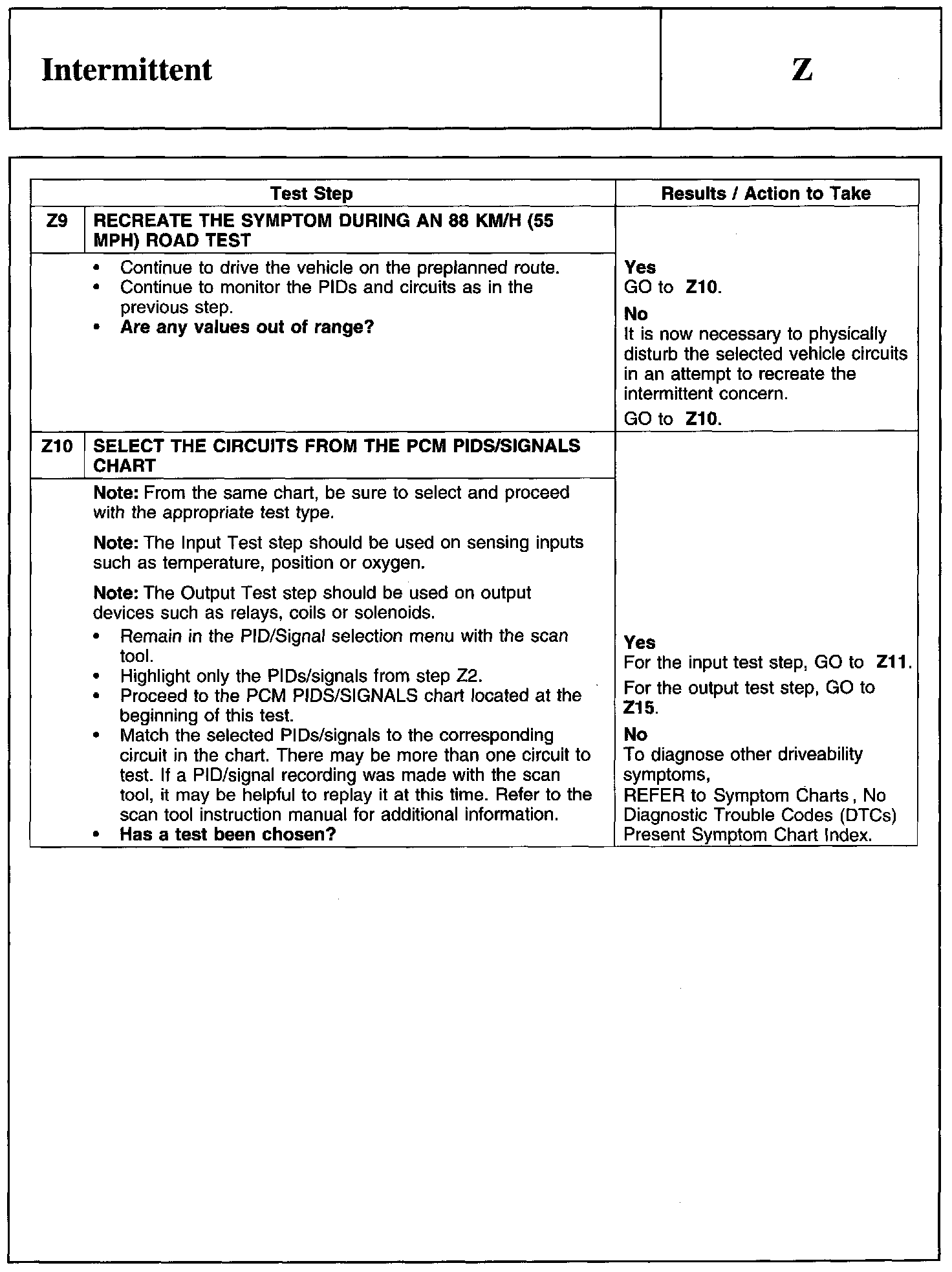 Test Z: Intermittent