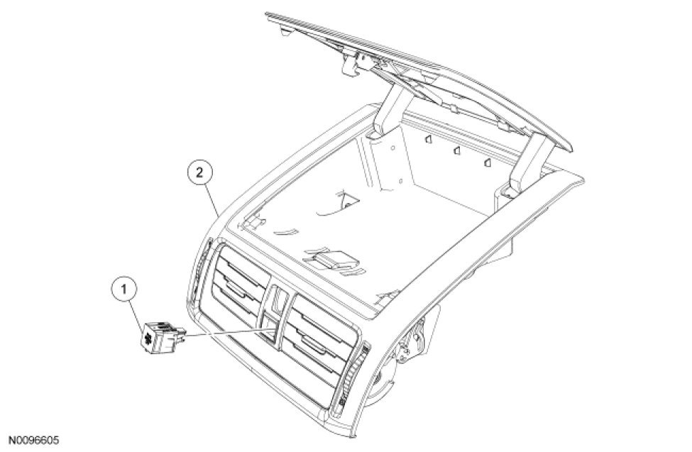 2. Remove the upper storage compartment. For additional information, refer to Instrument Panel and Console Storage Compartment - Upper.