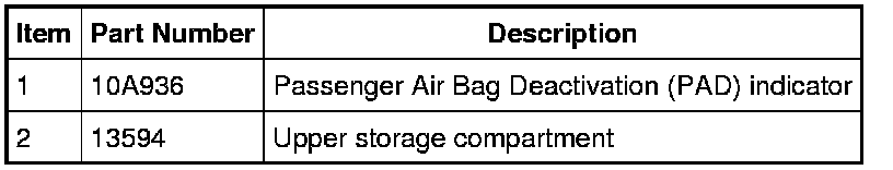 NOTE: The MKZ Passenger Air Bag Deactivation (PAD) indicator is part of the Front Controls Interface Module (FCIM) and is not serviceable separately.
