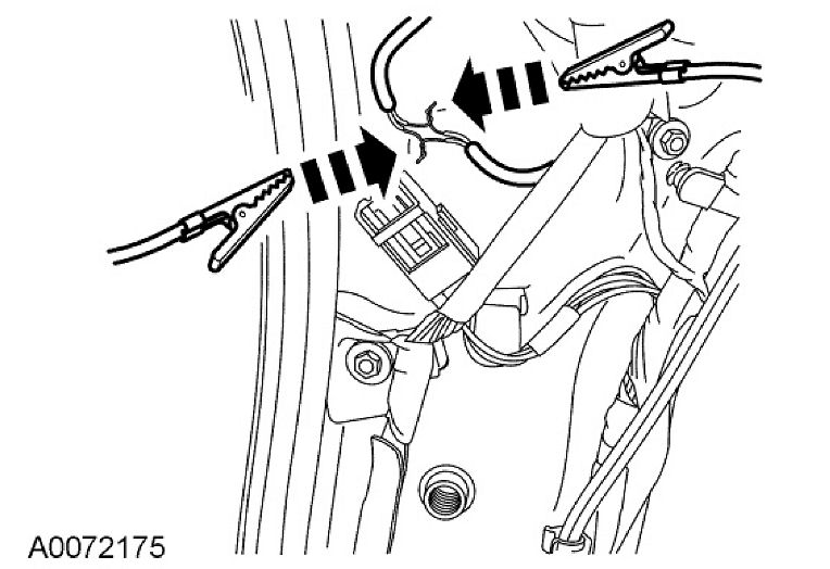 9. Deploy the deployable steering column by touching the ends of the 2 wires of the jumper harness to the terminals of a 12-volt battery.