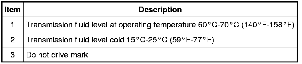 NOTE: The transmission fluid should be checked at normal operating temperature 60°C-70°C (140°F-158°F) on a level surface. Normal operating temperature can be reached after approximately 32 km (20 mi) of driving.
