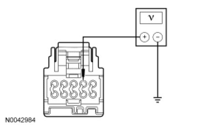 - Measure the voltage between DCSM C3305B-2, circuit VHS27 (WH/OG), harness side and ground.