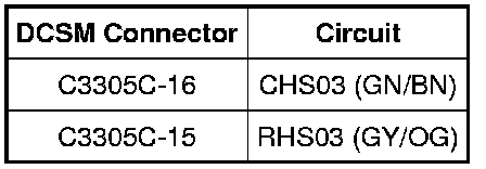 NOTICE: When taking measurements at Dual Climate Controlled Seat Module (DCSM) harness connectors, do not insert the electrical probes into the female connector pins. Inserting the probes into connector pins can cause intermittent or open electrical connections after reassembly resulting in Diagnostic Trouble Codes (DTCs) and system failure. Touching the tip of these connector pins is recommended instead.