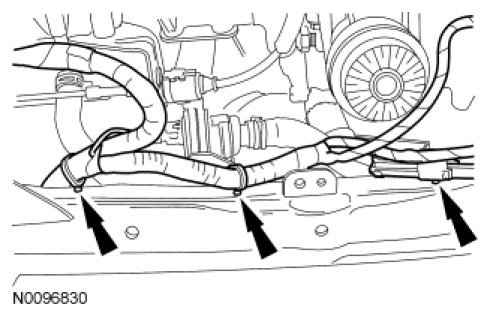 2. Detach the 3 wiring harness retainers from the subframe.