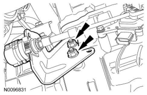 4. Remove the 2 transmission selector lever cable bracket nuts and position cable and bracket aside.