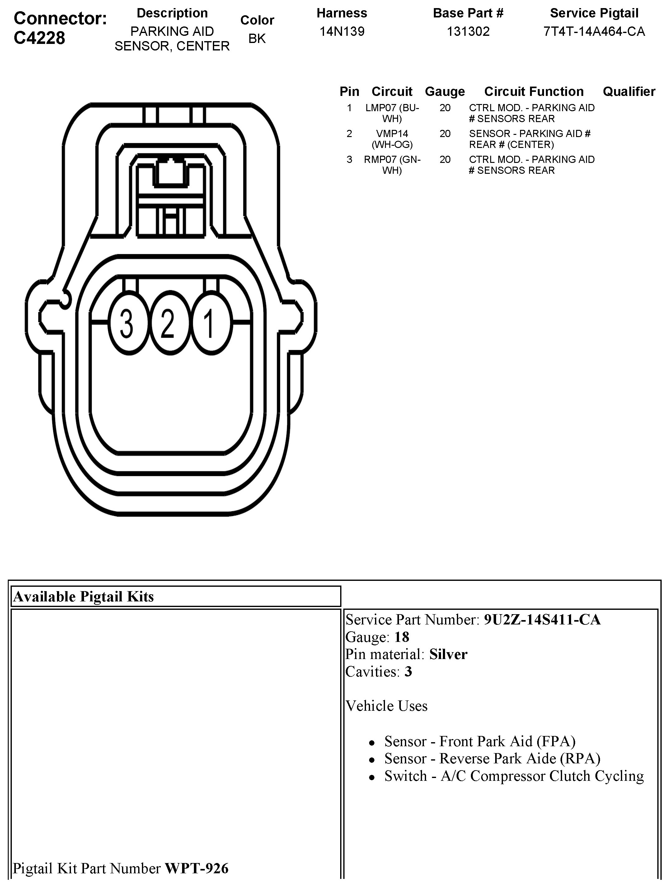 C4228 Parking Aid Sensor, Center