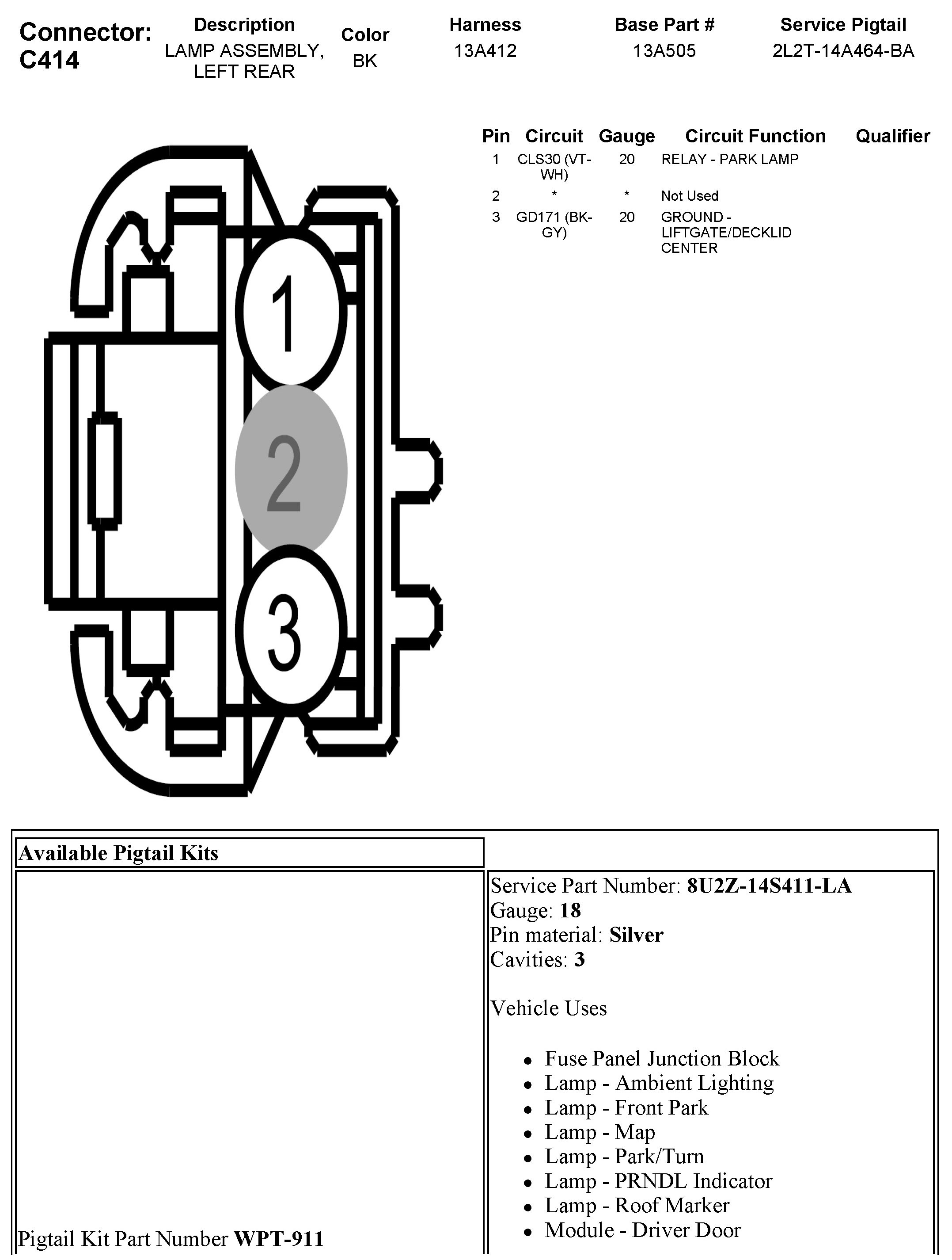 C414 Lamp Assembly, Left Rear