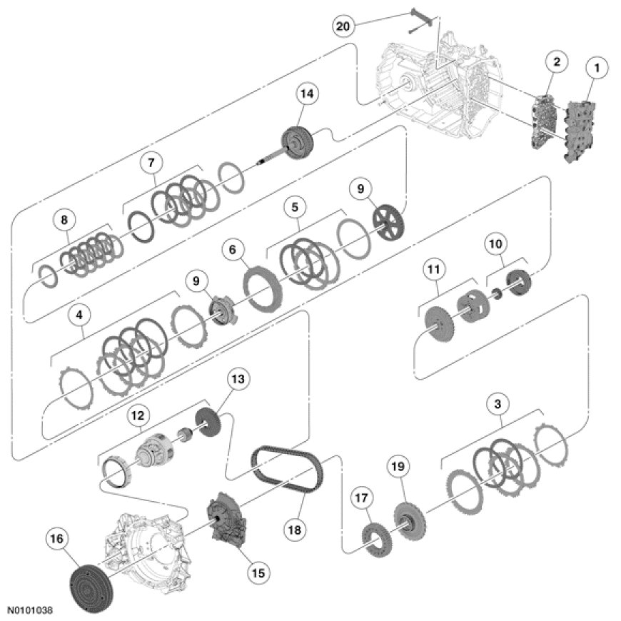 This transaxle has the following major components:
