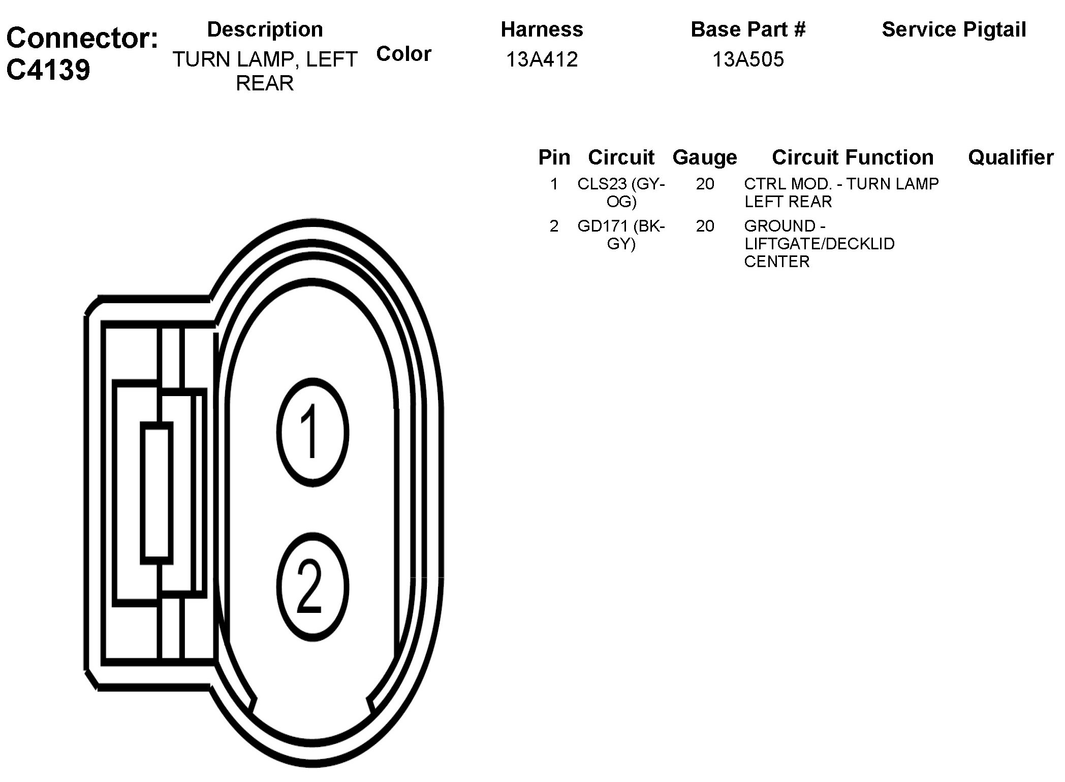 C4139 Turn Lamp, Left Rear