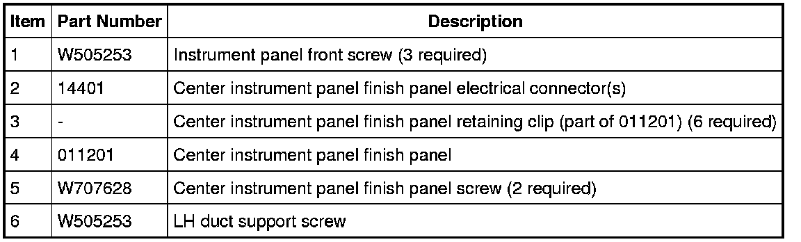 1. Remove the center instrument panel finish panel. For additional information, refer to Instrument Panel Finish Panel - Center Instrument Panel Finish Panel - Center.
