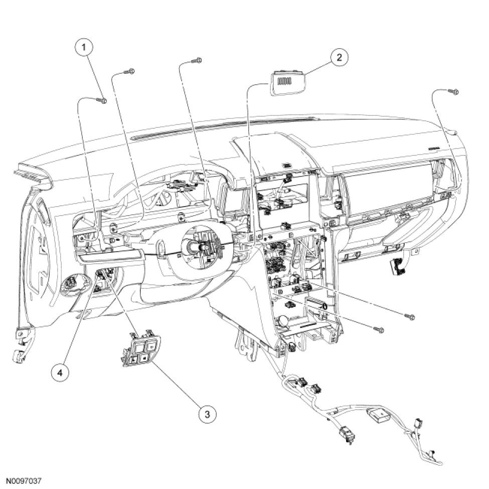 9. Through the Instrument Cluster (IC) opening, remove the 2 instrument panel front screws.