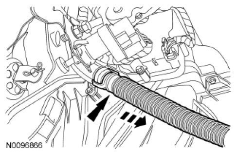 2. Pull the aspirator hose away from the heater core and evaporator core housing.