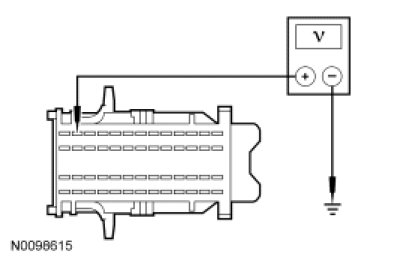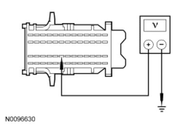 - Measure the voltage between SJB C2280B-32, circuit CE336 (GN/WH), harness side and ground.