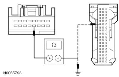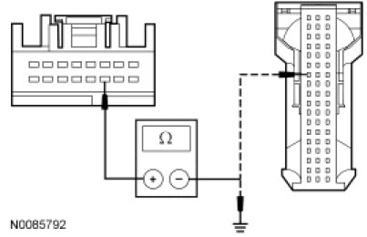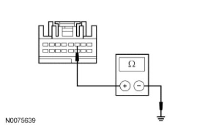 - Measure the resistance between the auto-dimming interior mirror, harness side and the APIM, harness side; and between the auto-dimming interior mirror, harness side and ground as follows: