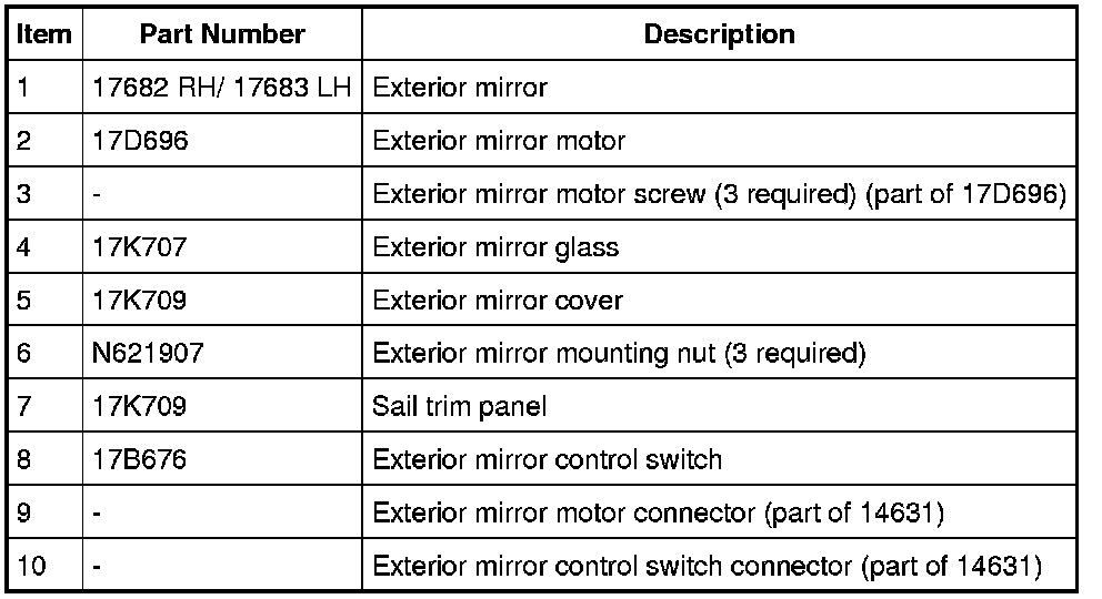 Exterior Mirrors - Exploded View
