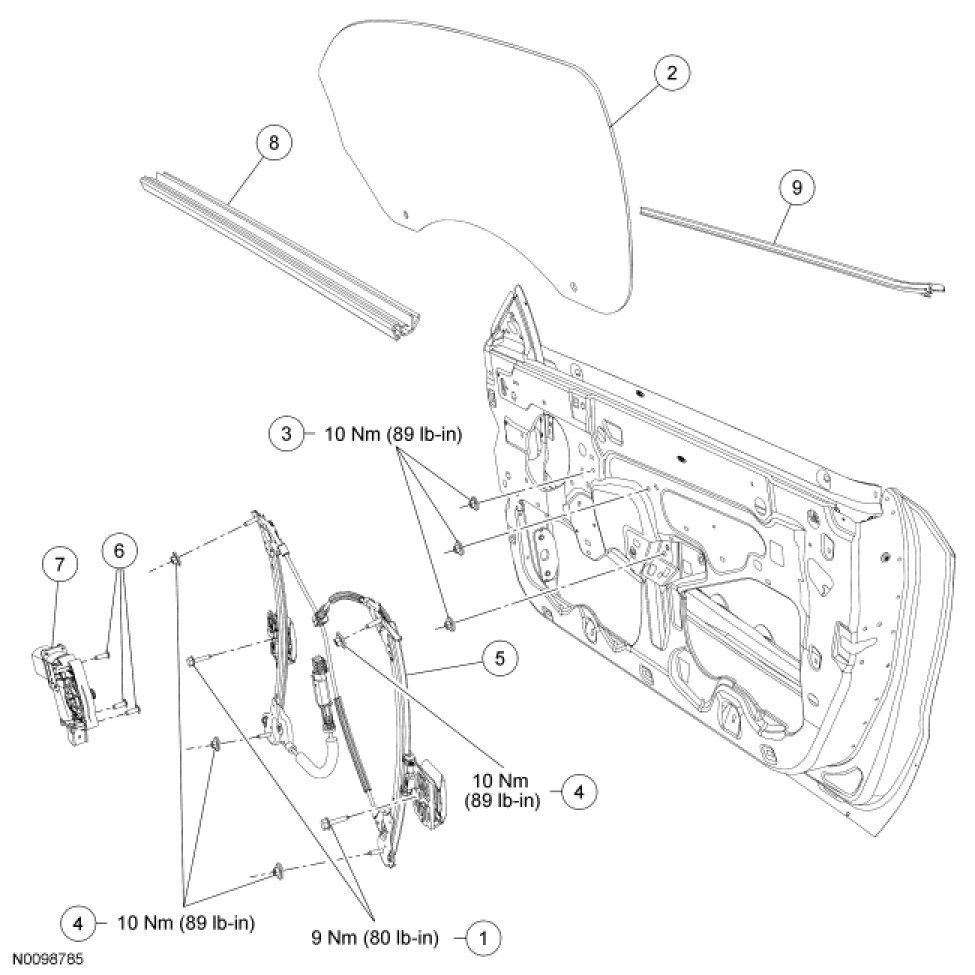 Glass, Frames and Mechanisms - Exploded View, Front Door
