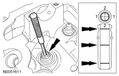 1. NOTE: Valve guides tend to wear in an hourglass pattern. The ball gauge can be inserted into the combustion chamber side of the valve guide, if necessary.