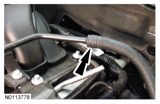 37. Connect the fuel supply tube quick connect coupling to the fuel rail. For additional information, refer to Fuel System - General Information Quick Connect Coupling.