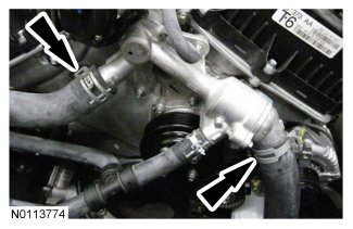38. Connect the upper and lower radiator hoses to the thermostat housing.