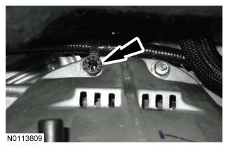 14. Position the wiring harness retainer on the RH front engine mount bracket stud bolt.