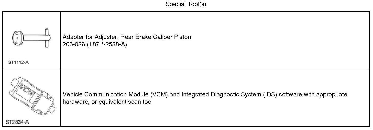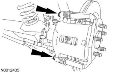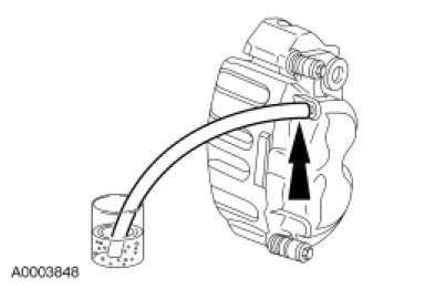 NOTE: Due to the complexity of the fluid path within the rear integral parking brake calipers, it may be necessary to follow this procedure when new calipers are installed.
