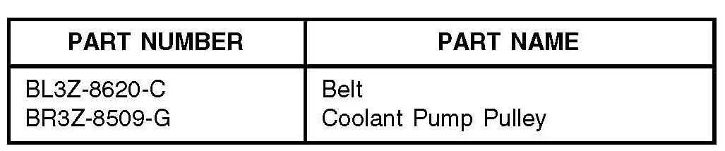 a. If engine build date is on or before 8/16/2010, replace coolant pump pulley and accessory drive belt with appropriate revised service parts. Refer to WSM, Sections 303-03 and 303-05.